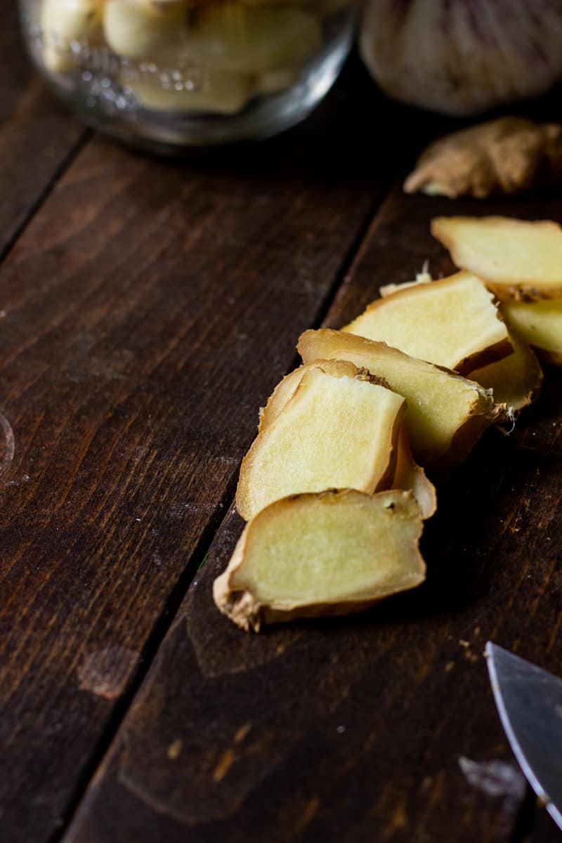 - 1 cup sliced ginger (washed, unpeeled) 140g