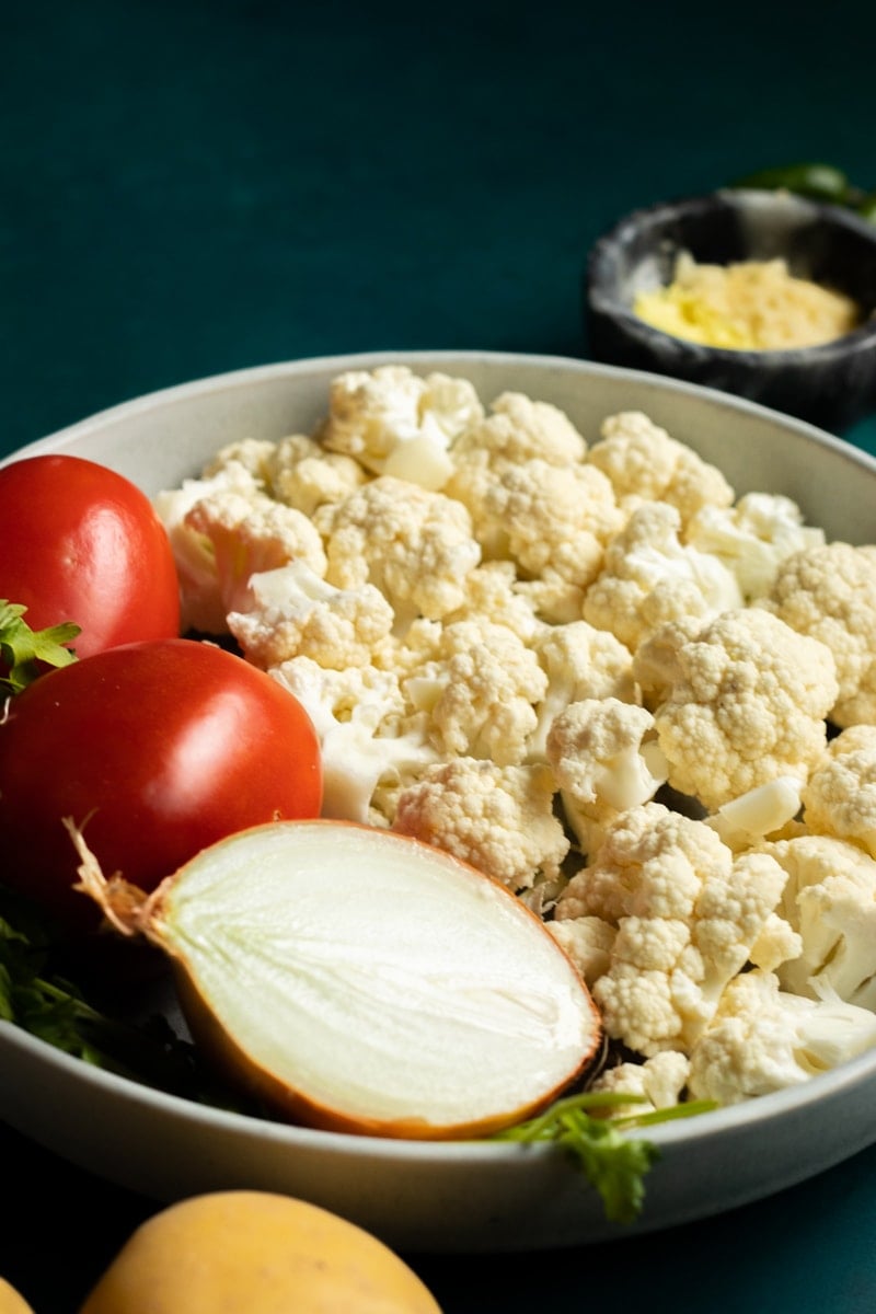 cauliflower cooked in spices with tomatoes. This authentic Aloo Gobi