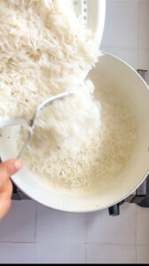 - Rinse your basmati rice until the water runs clear and soak it for at least 30 minutes. We will start on the rice halfway through the chicken cooking time.