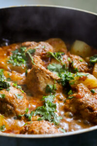 - Spoon over your chicken masala, your remaining mint, cilantro and chilies.