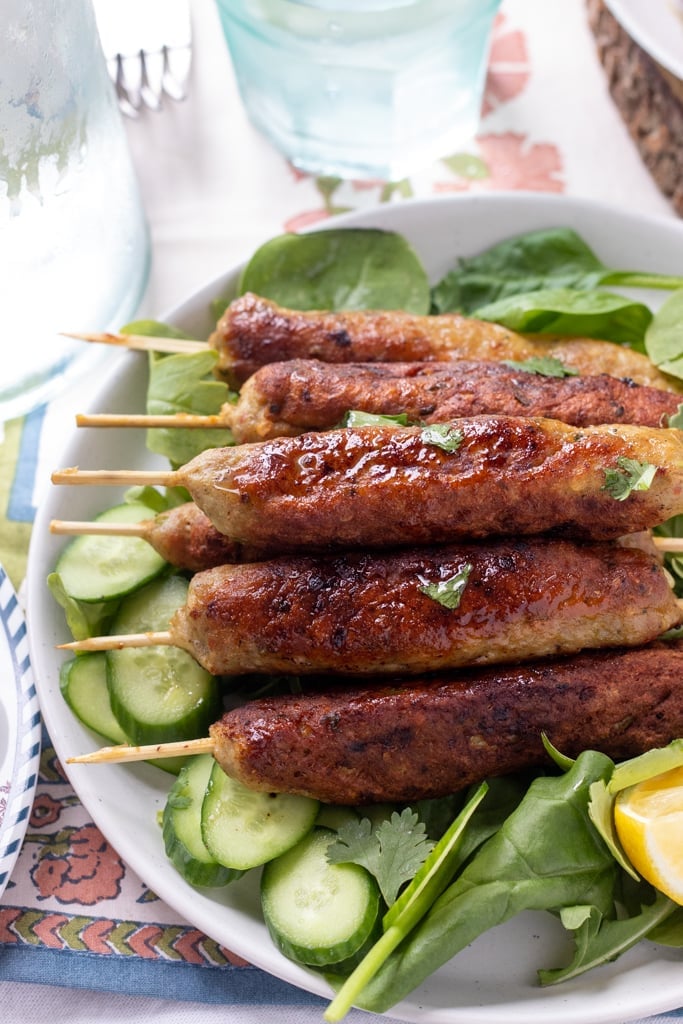 While I love to make these Seekh Kababs snack sized as the perfect addition to a Pakistani tea time spread, they are also so good in a paratha with some spicy yoghurt chutney and crunchy onions.