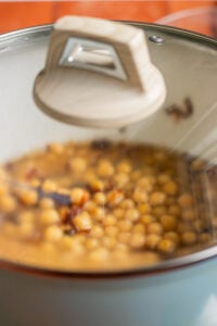 - Now add half a cup of hot water to the pot and simmer the chickpeas on low for 15 minutes or until tender. Taste the chickpeas - you want depth and assertive flavour so add more salt if needed.