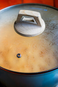- Heat oil in a pot on medium high heat, you want an even thin layer of oil.