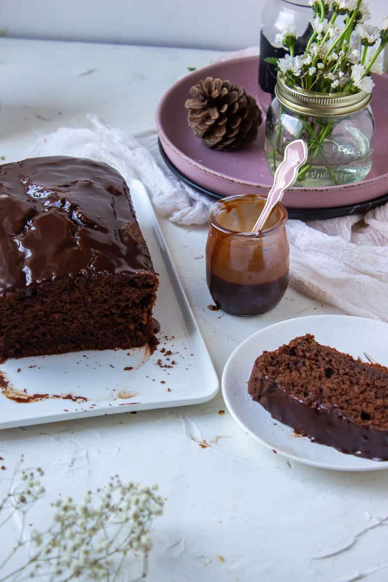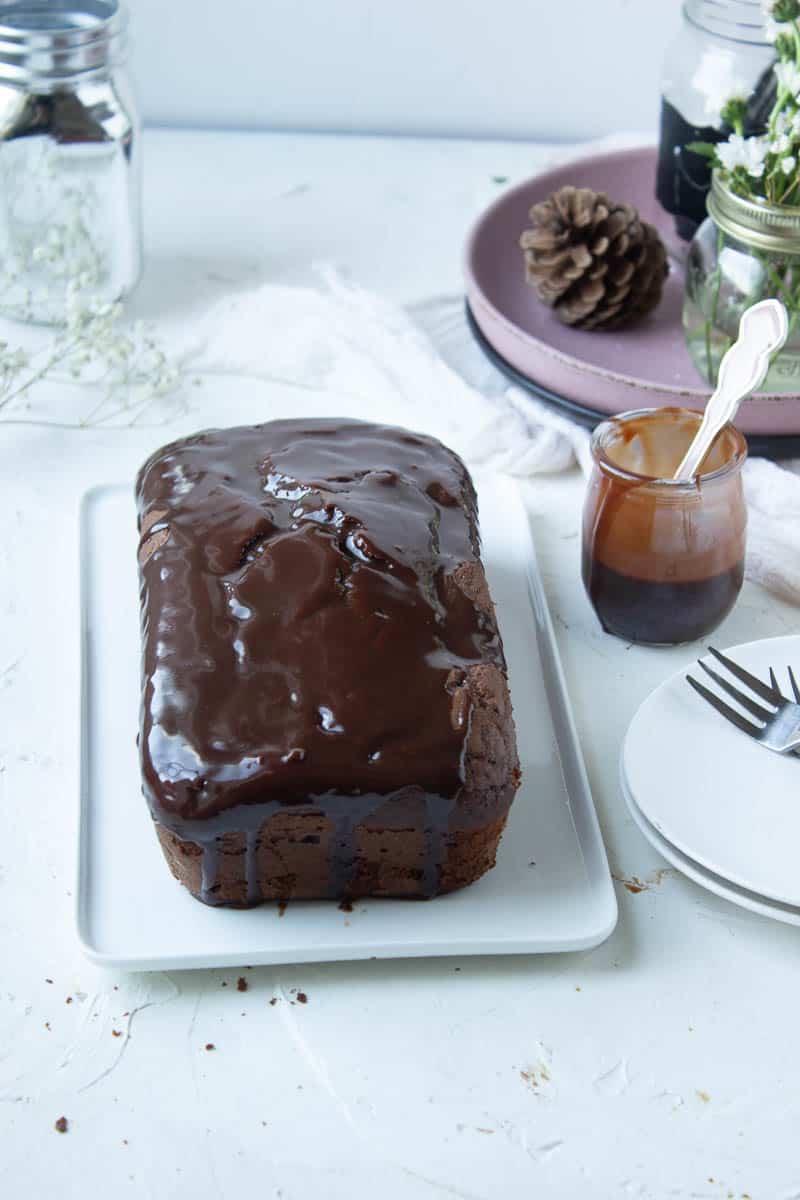 A rich tasting not too sweet chocolate cake with a nutella glaze that adds the PERFECT layer of flavor!