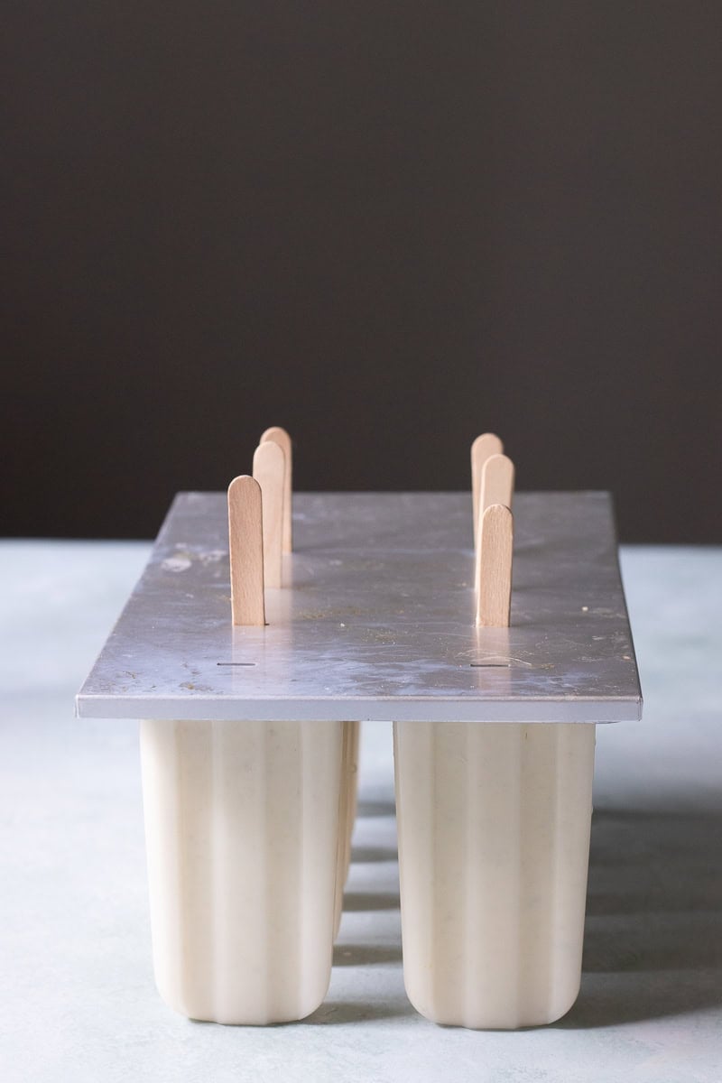 Then I realized that's a.) unnecessary $ and b.) they'd take up more freezer safe than this mama would like. That's why I am sticking to the classic popsicle mold here, but I have also made it in a trays/dishes for dinner parties.