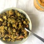 There are certain Urdu words that I really enjoy saying, those that sound exactly like what they mean. Kurkuri, that delightful word for crunchy and crispy is one of them. The first time my daughter had this Kurkuri Bhindi she was 3 years old and we were visiting my parents in Karachi. Her Nano had made this bhindi and Zara upon trying them said “these sticks are yummy!” It then occurred to me that my daughter had never had Okra except for its cornmeal battered deep fried incarnation. As yummy as the Deep Fried Okra was that way it was far too much work (and oil) for my liking.