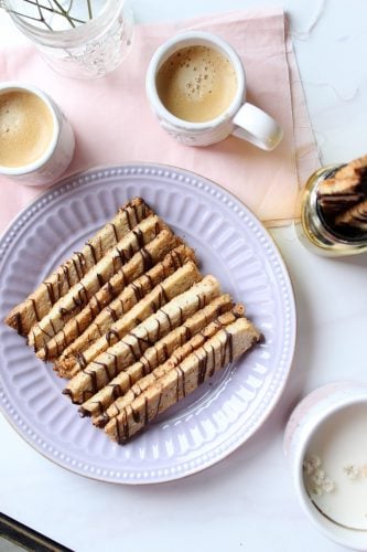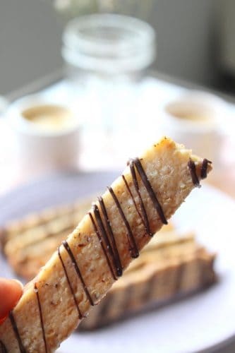 (Note: This Crunchy Hazelnut Sticks recipe has been updated with new picturesย that do feature the drizzle! Also new: a printable recipe at the bottom)