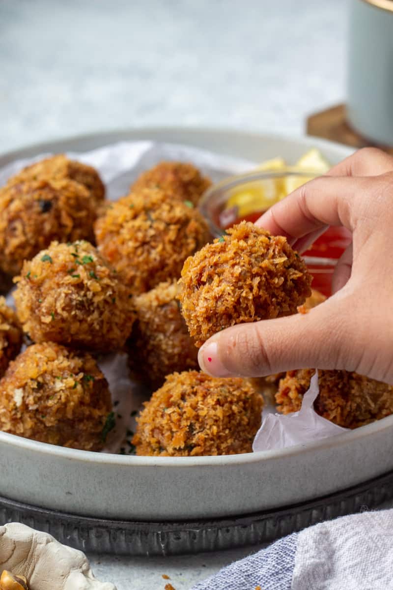 Some dishes are far better than they sound. These Crunchy Fried Chicken Balls are right up there. They're flavored with Asian flavours and made with a whole lot of desi mama love (and a little mirch!). My mother made these for us when we were growing up and I devoured them with the same enthusiasm as my girls do now.