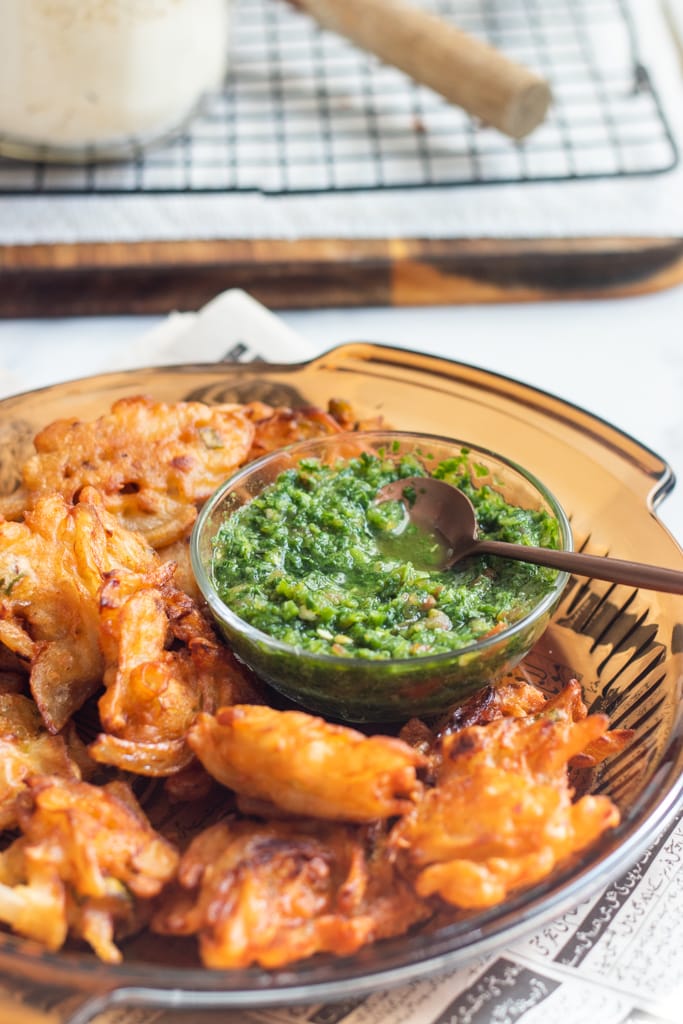 If you are hosting then the last thing you want to be doing is frying pakoras in the kitchen while your guests break their fast. Here is what I do instead