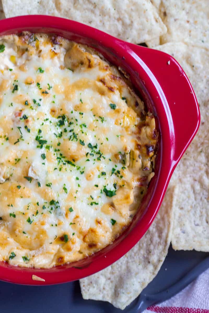 I am not sure which of the above words can me most excited, but man what a combo! It is taking all of my willpower to write this recipe instead of running and making another batch. The magic of this Hot Cajun Corn Dip is that you probably have all the ingredients anyway! On these chilly winter days this dip totally hits the spot.