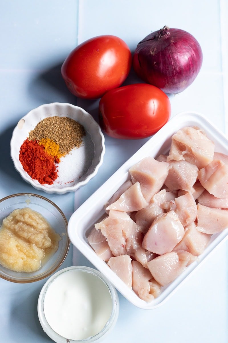- 1 lb boneless chicken cut unto 1.5 inch pieces (450g) (1.5-2lb for bone in)