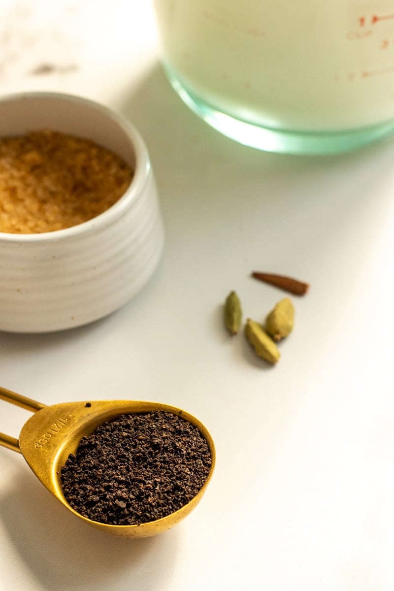 - ½ tbsp tea leaves (a spoonful of tea leaves) or 1 teabag