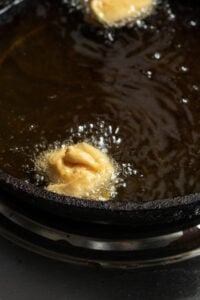 - Heat oil for deep frying (you can pan fry as well, but then they don't puff up as much)