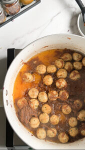 - Maintain the heat level and add your mini meatballs to the pot and cover cooked for 5-6 minutes.