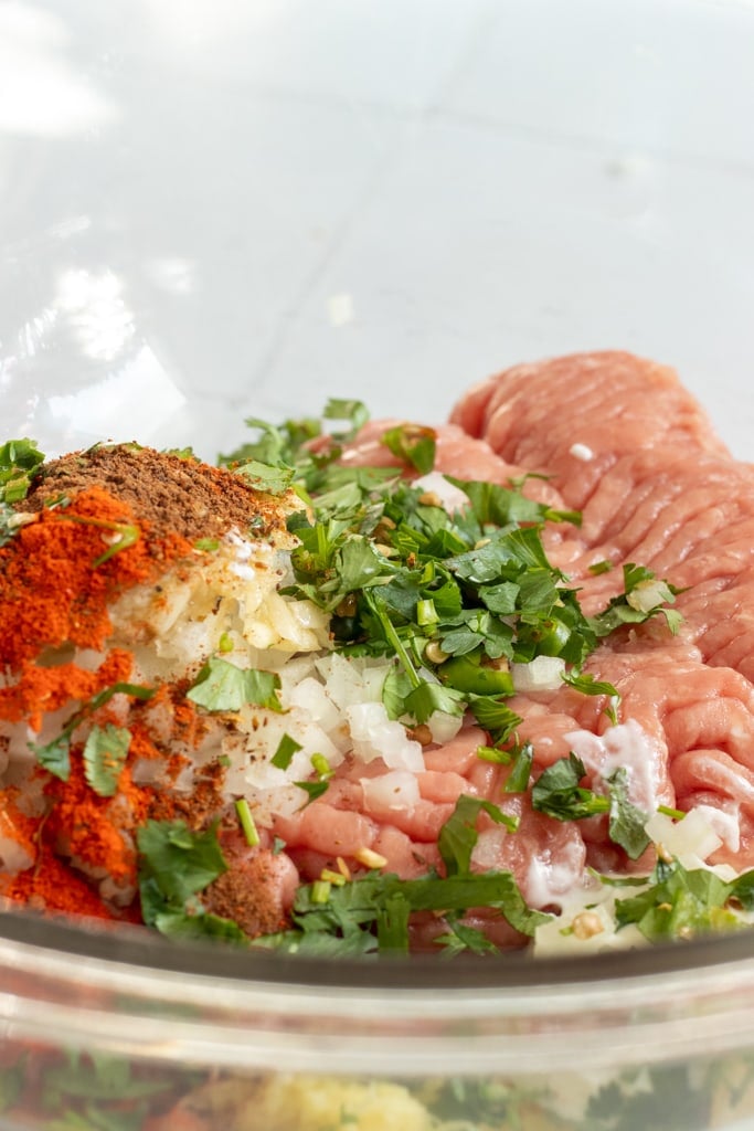 Ground chicken: I have lean so this is what I use, but you can use ground chicken thigh for juicier kababs.