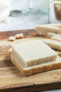 Tip Two: You want your slices to be the same size, but stacking 6 pieces of bread can be unwieldy. Stack 3, cut into squares and use one of your squares as as a template to cut the remainder.