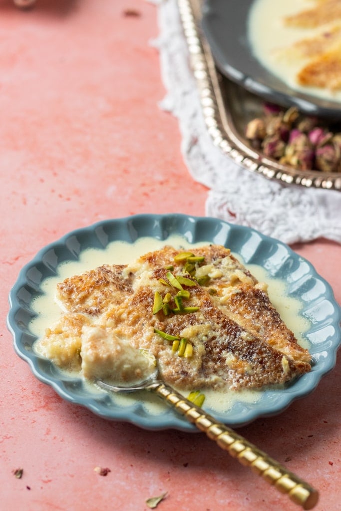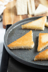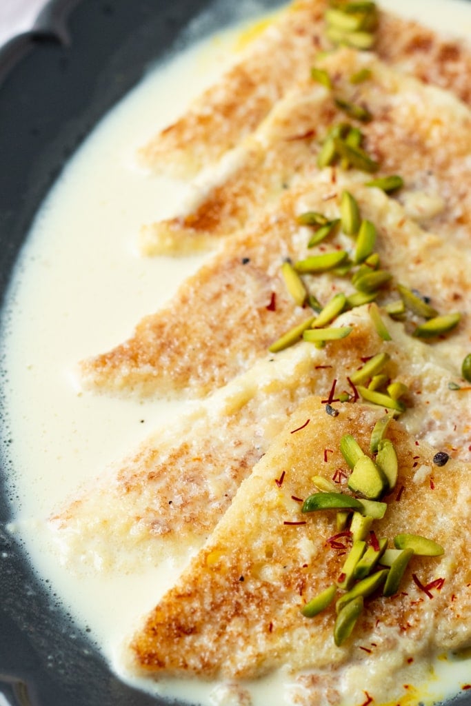 One of my favorite things about Shahi Tukray is how pantry friendly it is. All it takes is a handful of accessible ingredients to whip them up.
