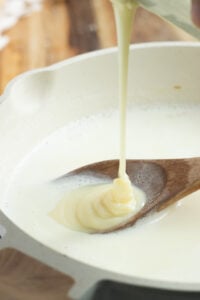- Stir in your condensed milk. You may want to use a little less if you are thickening the milk more.