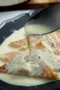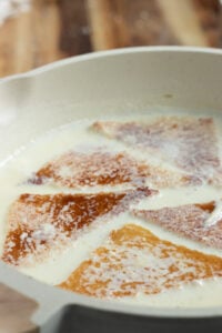 - For easier plating don't leave your bread in too long because it becomes hard to transfer. If you are making it in advance then you can also place the fried bread in your dish and gently pour over the milk. The bread will absorb the milk mix as it cools.