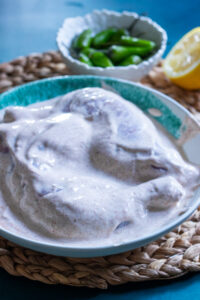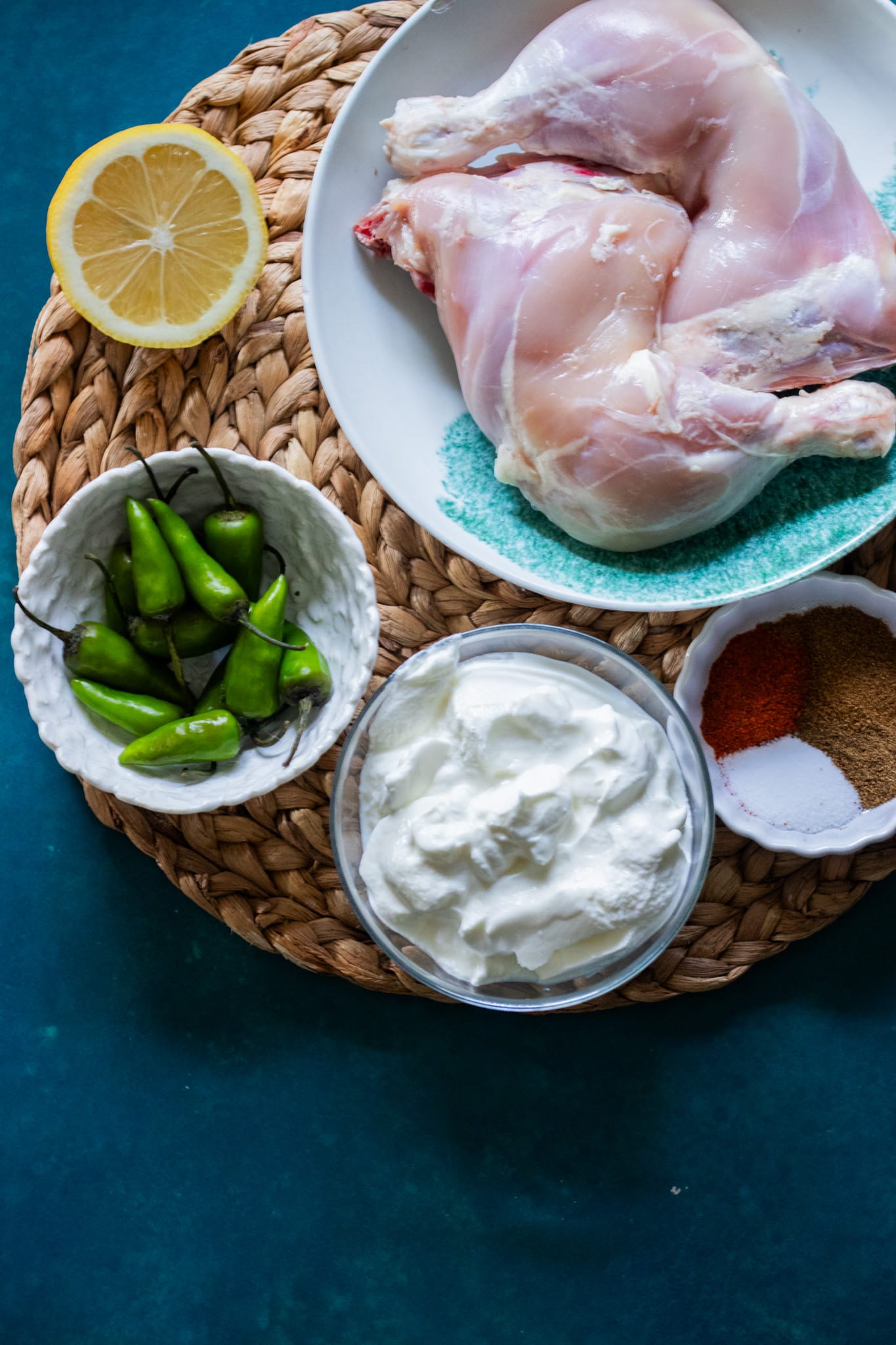 Tawa Chicken is a chicken leg quarter marinated in the simplest, zestiest yoghurt based marinade. While the marinade is deceptively milder than the popular chicken tikka, it packs a punch that is amplified by the way it is cooked.