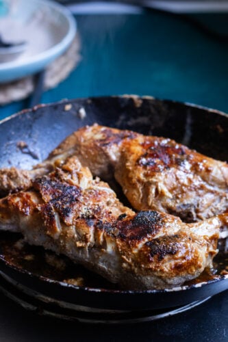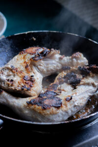 - Cook, undisturbed for 4-5 minutes per side, the chicken should develop a bit of a crust.