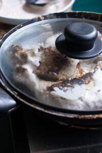 The chicken is seared on both sides creating a smoky depth and then the flavour (and moisture!) is amplified by adding back the remaining marinade. Once that gets beautifully absorbed then you double down on the attitude by adding in sliced green chilies and lemon.